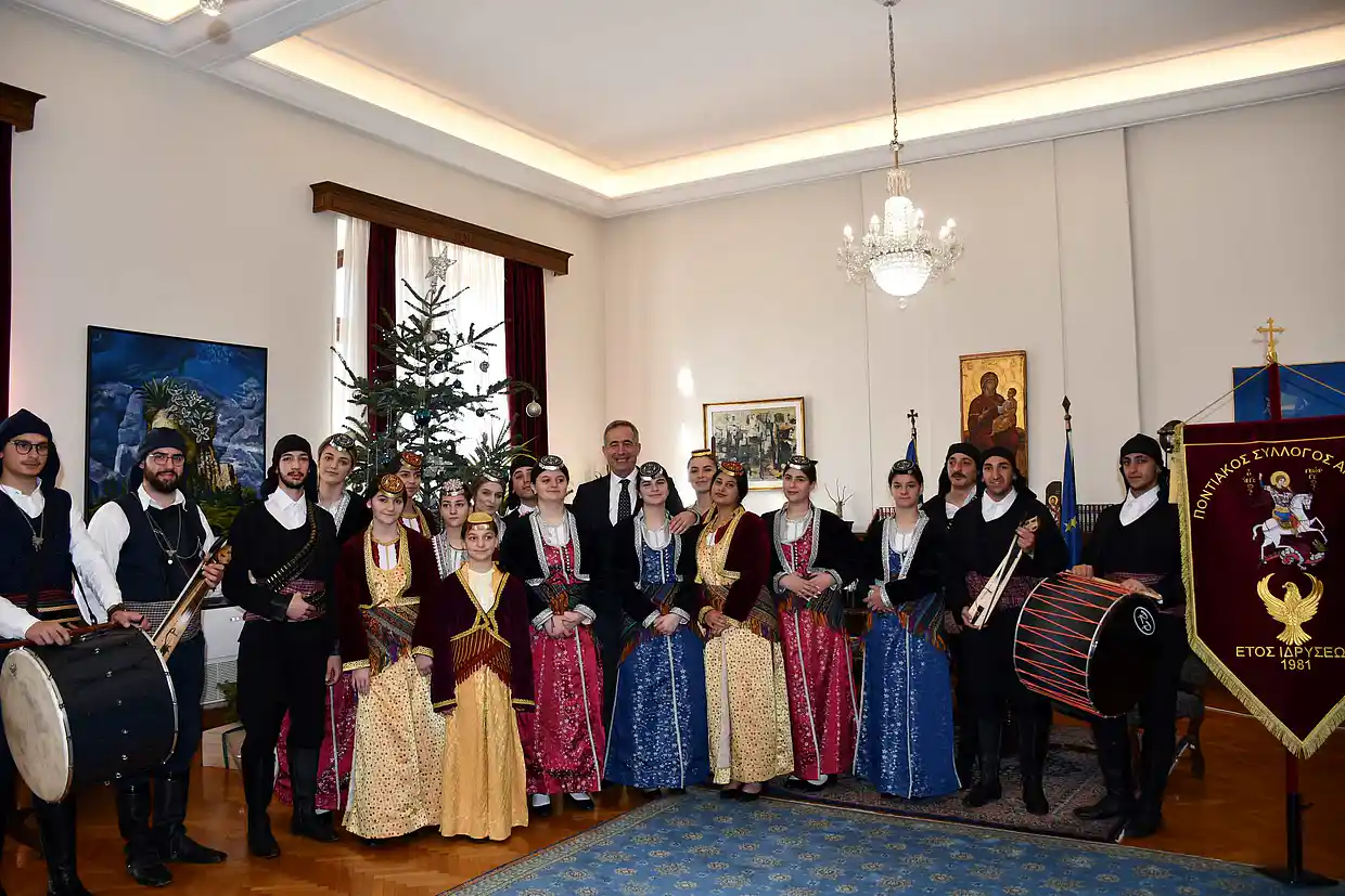 Κάλαντα των Θεοφανείων από τον Ποντιακό Σύλλογο Ακρινής Κοζάνης άκουσε στο Διοικητήριο ο Υφυπουργός Εσωτερικών, αρμόδιος για θέματα Μακεδονίας και Θράκης, Στάθης Κωνσταντινίδης.