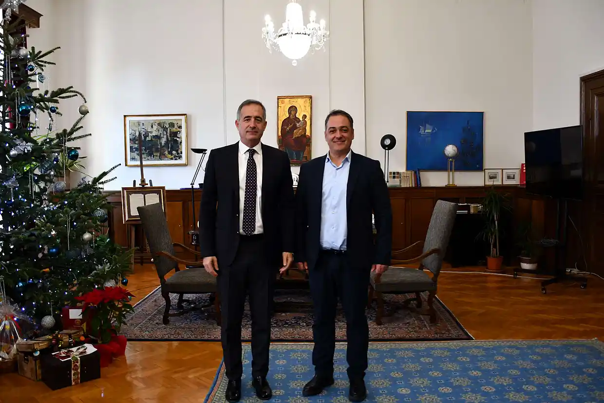 Νωρίτερα, ο Υφυπουργός Μακεδονίας και Θράκης υποδέχθηκε στο Διοικητήριο τον νέο Δήμαρχο Κοζάνης κ. Γιάννη Κοκκαλιάρη, με τον οποίο πραγματοποίησε την πρώτη θεσμική συνεργασία για τη νέα χρονιά. Οι κύριοι Κωνσταντινίδης και Κοκκαλιάρης έθεσαν τις βάσεις μιας δυναμικής και εποικοδομητικής συνεργασίας που θα έχει στο επίκεντρο τον πολίτη και θα δίνει λύσεις στα ζητήματα που απασχολούν τις τοπικές κοινωνίες.