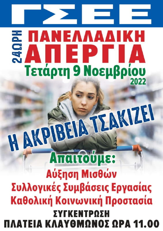 Την Τετάρτη 9 Νοεμβρίου βάζουμε ένα τέλος στην Ακρίβεια και στην Εξαθλίωση που τσακίζει την Ελληνική Κοινωνία.