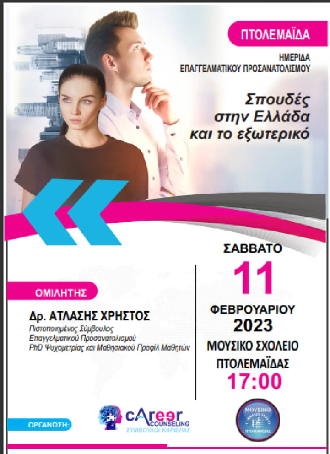 Το Μουσικό Σχολείο Πτολεμαΐδας διοργανώνει ημερίδα επαγγελματικού προσανατολισμού το Σάββατο 11 Φεβρουαρίου στις 5.00 στο αμφιθέατρο του