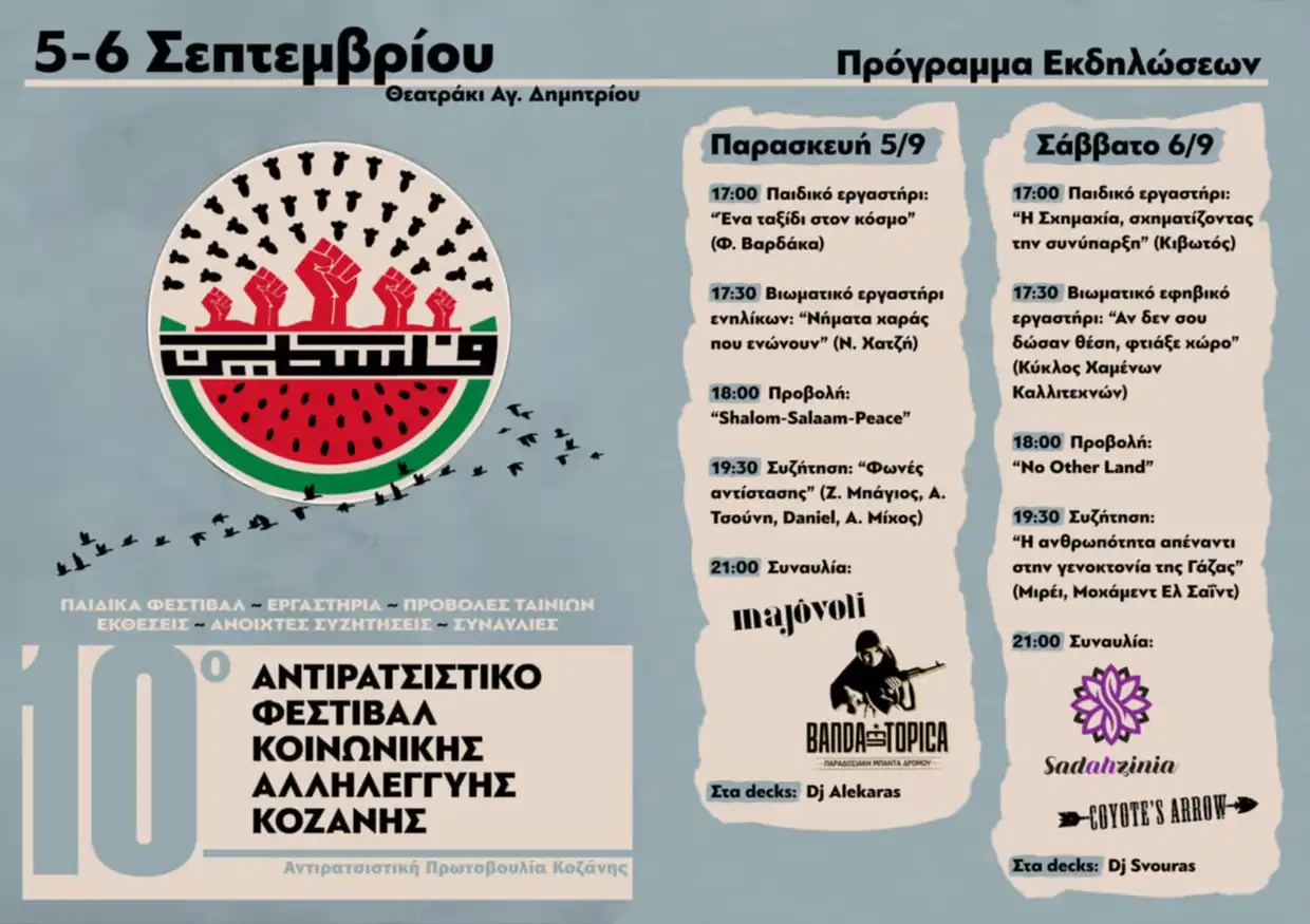 Το πρόγραμμα του 10ου Αντιρατσιστικού Φεστιβάλ Κοινωνικής Αλληλεγγύης Κοζάνης