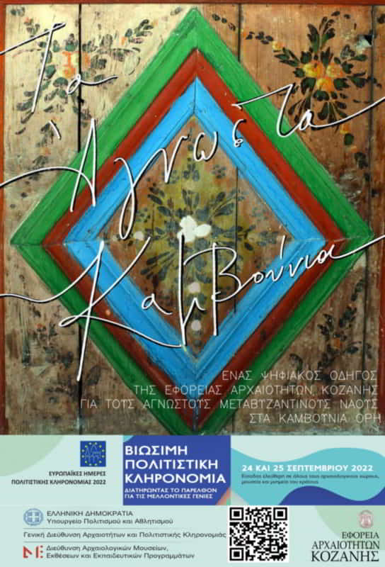 Η φετινή συμμετοχή της Εφορείας Αρχαιοτήτων Κοζάνης με τίτλο «Τα άγνωστα Καμβούνια» είναι ψηφιακή και περιλαμβάνει ένα συνοπτικό ψηφιακό οδηγό για τα μεταβυζαντινά μνημεία στην ευρύτερη περιοχή των Καμβουνίων και την τέχνη τους. Εναρμονιζόμενη με το φετινό θέμα του εορτασμού η Εφορεία Αρχαιοτήτων Κοζάνης επικεντρώνει την προσοχή της σε άγνωστα, κατά κύριο λόγο, μνημεία μιας περιοχής που δεν είθισται να έλκει επισκέπτες λόγω της καλλιτεχνικής της παρακαταθήκης, αλλά λόγω του φυσικού της κάλλους και ενδιαφέροντος. Στόχος της συγκεκριμένης δράσης της Υπηρεσίας μας είναι να γνωστοποιήσει σε τοπικό και εθνικό επίπεδο την καλλιτεχνική και ιστορική σημασία των μεταβυζαντινών μνημείων της περιοχής των Καμβουνίων, προκειμένου να ευαισθητοποιήσει τους τοπικούς πληθυσμούς σχετικά με θέματα προστασίας της πολιτιστικής τους κληρονομιάς, κοινοποιώντας τους έναν άγνωστο καλλιτεχνικό πλούτο της περιοχής.