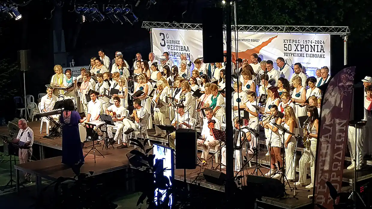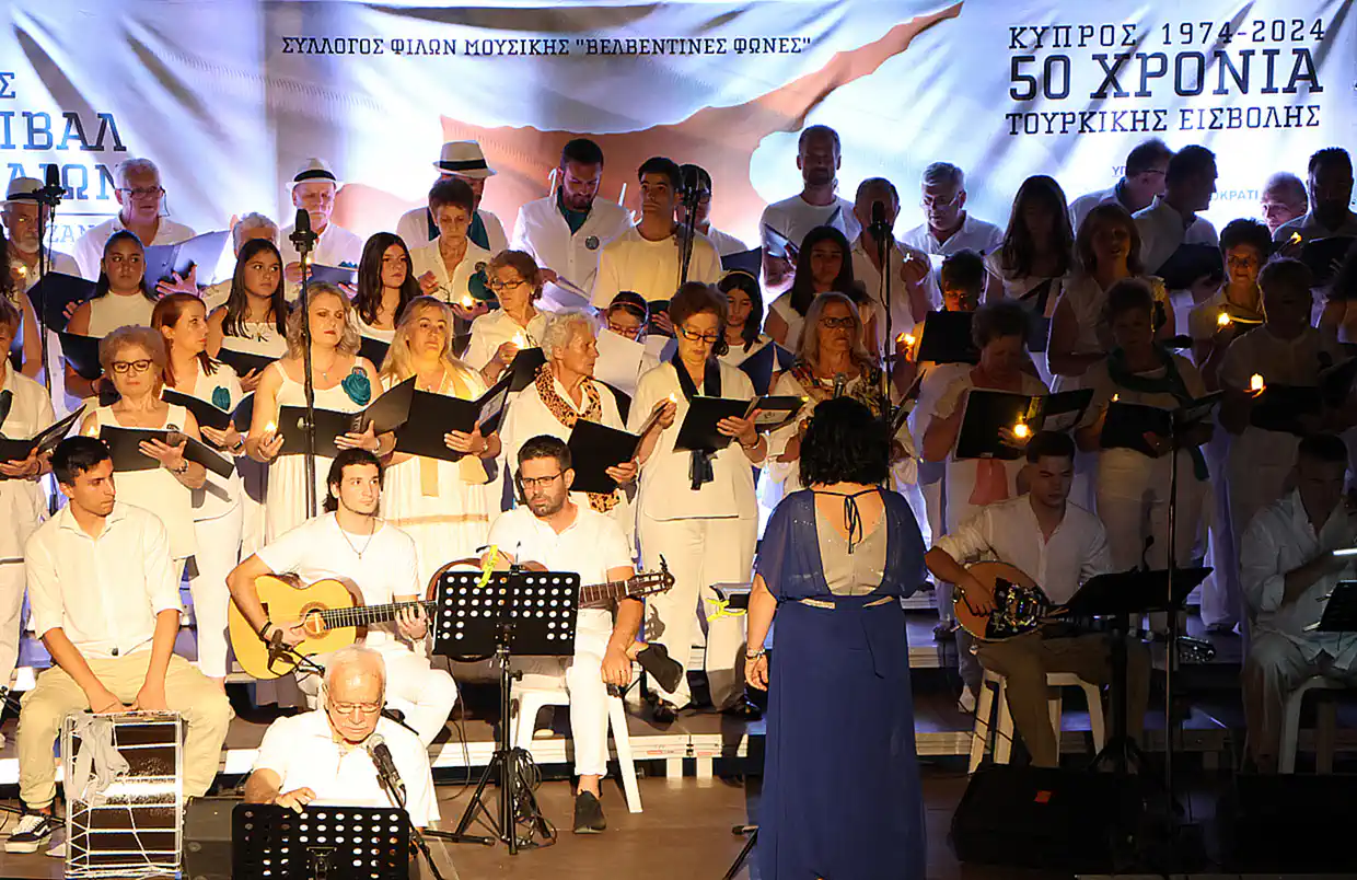 Μία ιδιαίτερα σημαντική – συγκινητική εκδήλωση, με αφορμή τη συμπλήρωση 50 χρόνων από την τουρκική εισβολή και την κατοχή της μαρτυρικής Κύπρου, πραγματοποιήθηκε στο αμφιθέατρο των αθλητικών εγκαταστάσεων στο Βελβεντό την Παρασκευή 28 και το Σάββατο 29 Ιουνίου 2024 στο πλαίσιο του 3ου Διεθνούς Φεστιβάλ χορωδιών.