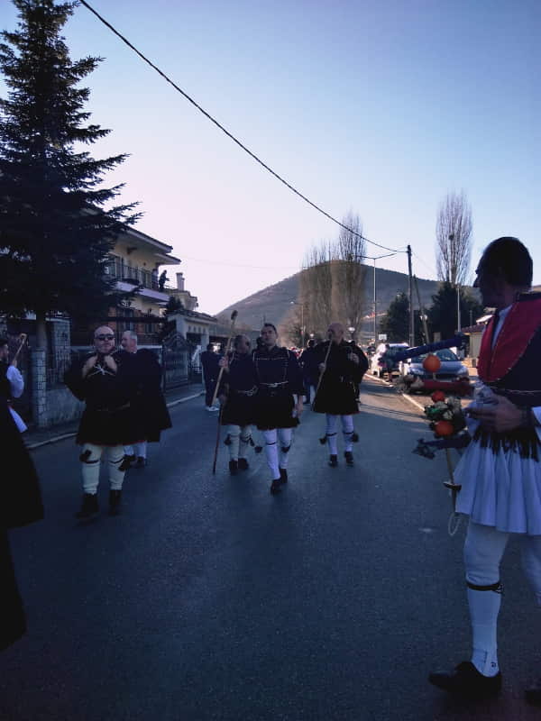Η πρώτη μέρα του χρόνου ξεκίνησε με τους «Γκδουνάδες» το πρωί, που μετά τον εκκλησιασμό συνέχισαν το γλέντι στην κεντρική πλατεία, για να ακολουθήσει η παρέλαση με τα «Μπουμπουσάρια» και παραδοσιακό γλέντι υπό τους ήχους των «Δυτικομακεδόνων» και άφθονο κρασί.