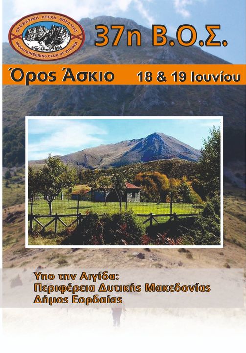 Καλούμε τα μέλη του ΕΟΣ Κοζάνης να συμμετέχουν στην 37η Βορειοελλαδική Ορειβατική Συνάντηση (ΒΟΣ) συλλόγων στο καταφύγιο της Ορειβατικής Λέσχης Εορδαίας στους πρόποδες του όρους Άσκιο.