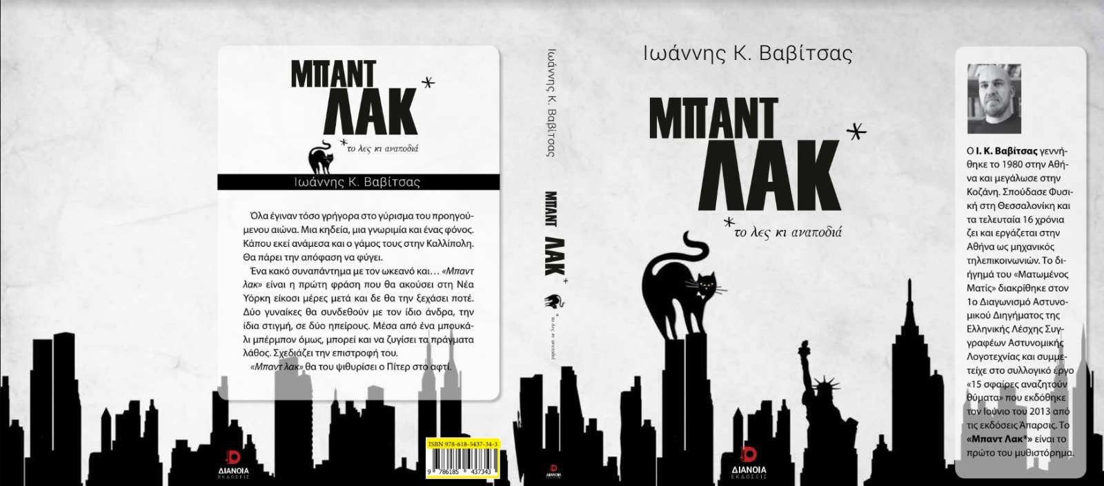 Η εφημερίδα «Ο Χρόνος», το βιβλιοπωλείο «Στοά του Βιβλίου» και οι εκδόσεις «Διάνοια» διοργανώνουν το Σάββατο 10 Σεπτεμβρίου στις 19:00 την παρουσίαση του βιβλίου του Κοζανίτη συγγραφέα Ιωάννη Βαβίτσα με τίτλο «Μπαντ Λακ».