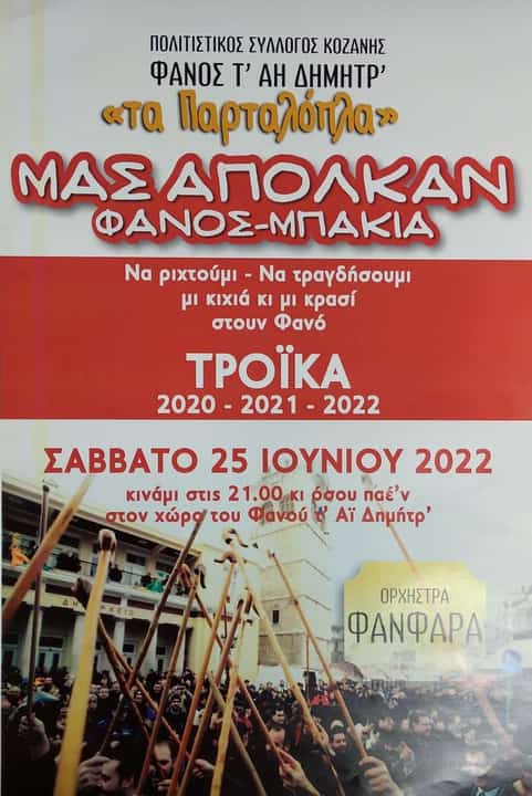 Σας καρτεράμε στον χώρο του φανού τ’ Αι Δημητρ του Σαββάτου 25/06/2022. Κινάμε με το 11 (χορό έντεκα) στις 21.00μμ.