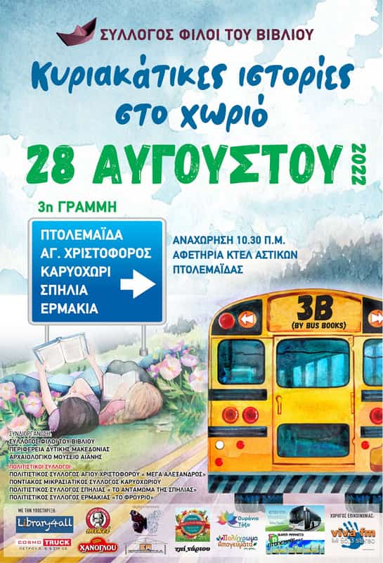 Ένα λεωφορείο 3B (By Bus Books) εφοδιασμένο με θεματικά λογοτεχνικά κουτιά θα ξεκινήσει από την πόλη της Πτολεμαΐδας, θα σταθμεύσει στα χωριά των γραμμών και θα αλληλεπιδράσει με τις ιστορίες του χωριού.