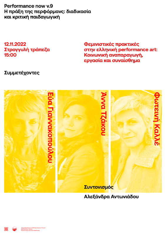 Η στρογγυλή τράπεζα είναι μέρος του Συμποσίου του Performance now v.9  «H πράξη της περφόρμανς: διαδικασία και κριτική παιδαγωγική», το οποίο συμπεριλαμβάνει σεμινάρια – εργαστήρια των καλλιτεχνών Εύας Γιαννακοπούλου, Γεωργία Παΐζη, Πάνου Σκλαβενίτη και Άννας Τζάκου. Στο ένατο  Performance now έχουν ήδη πραγματοποιηθεί από τον Μάρτιο μέχρι τον Ιούνιο του 2022, δέκα διαλέξεις καλλιτεχνών και μία στρογγυλή τράπεζα. Έχουμε εξετάσει τη σχέση ανάμεσα στη διαδικασία, την παραγωγή και την παιδαγωγική της περφόρμανς εστιάζοντας στις διαδικασίες παραγωγής των έργων περφόρμανς και στις ερευνητικές μεθοδολογικές δυνατότητες που προκύπτουν από την εξέταση τους.