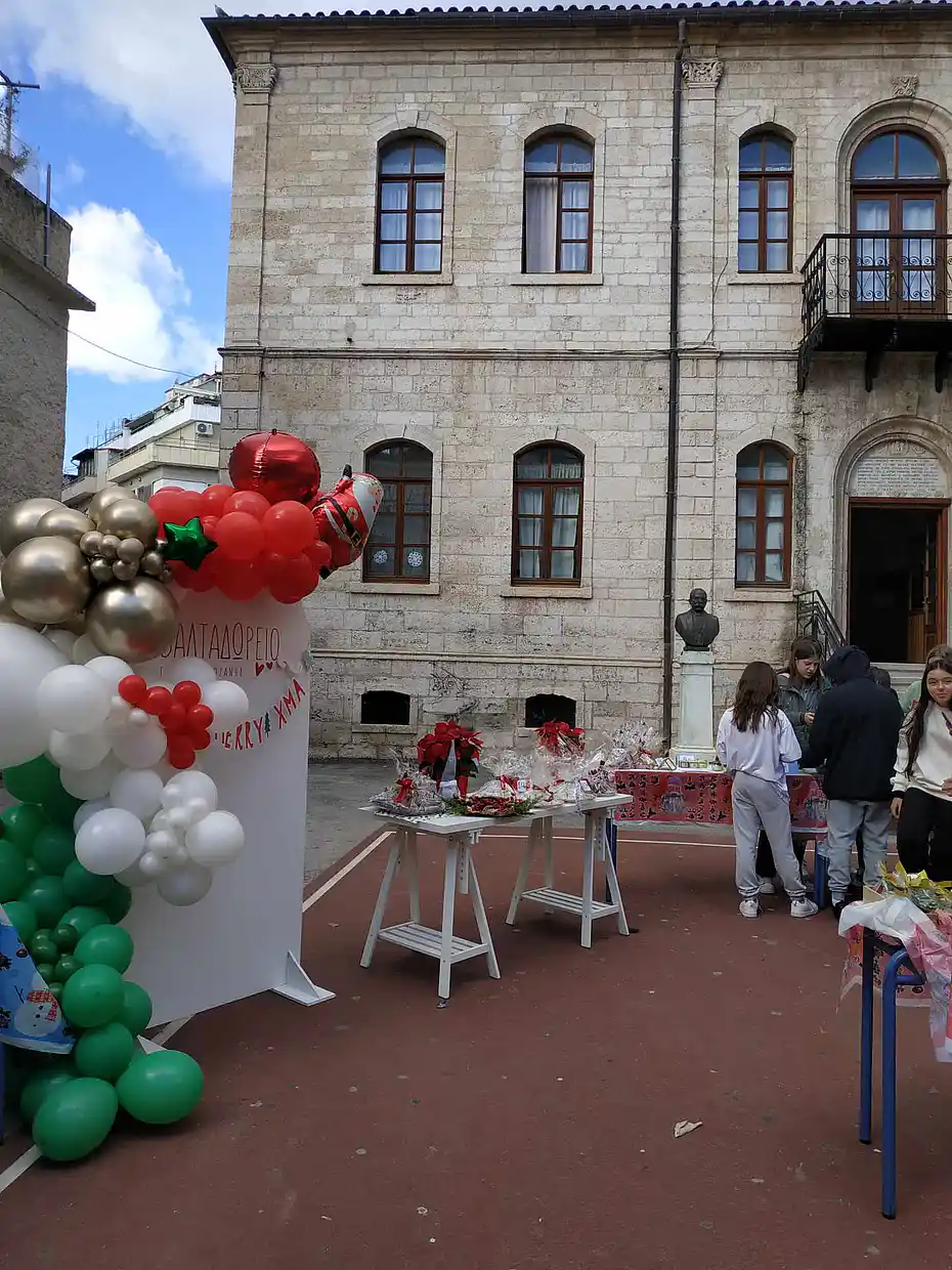 Την Παρασκευή 22 Δεκεμβρίου , τελευταία ημέρα λειτουργίας του σχολείου ,πριν τις χριστουγεννιάτικες διακοπές ,οι γονείς και τα παιδιά προμηθεύτηκαν όμορφα χριστουγεννιάτικα στολίδια και δωράκια που συγκεντρώθηκαν από δωρεές ή κατασκευάστηκαν από τους μαθητές του σχολείου.