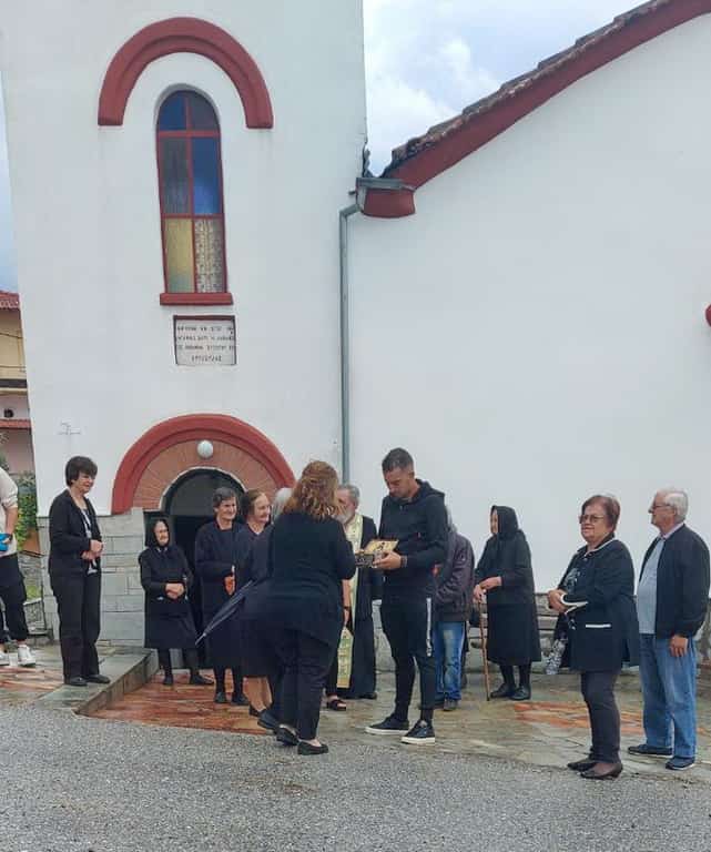 Παρουσία αρκετών κατοίκων της Ελάτης, τελέστηκε το πρωί του Σαββάτου ευχαριστήρια δέηση στον ενοριακό ναό της Κοίμησης της Θεοτόκου και στη συνέχεια έξω από το ναό παραλήφτηκε το ιερό λείψανο με ευλάβεια από εκπρόσωπο της ομάδας των καβαλάρηδων της Ελάτης, για τη μεταφορά του στο μοναστήρι, που αυτή τη φορά έγινε οδικώς με όχημα.