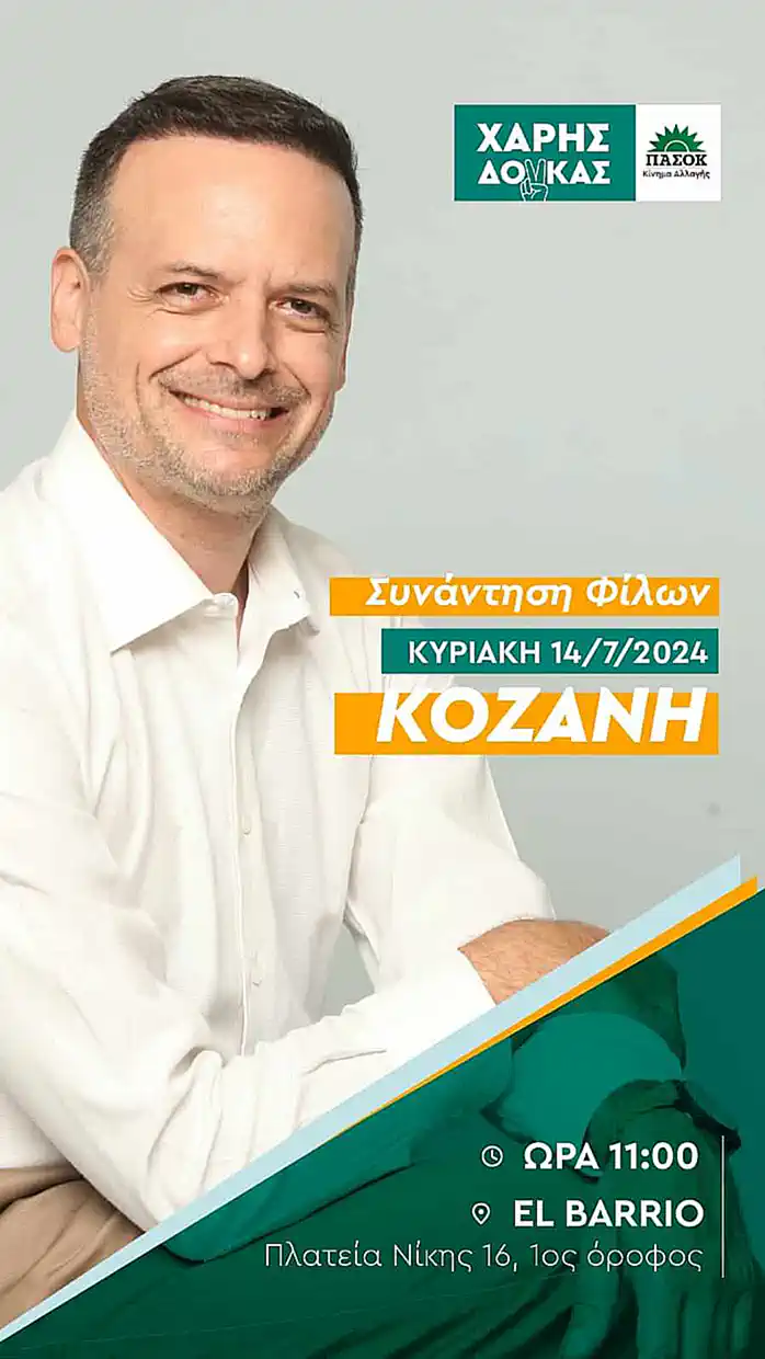 Την πόλη της Κοζάνης θα επισκεφτεί ο Υποψήφιος Πρόεδρος του ΠΑΣΟΚ – Κινήματος Αλλαγής Χάρης Δούκας την Κυριακή, 14-07 στις 11:00.