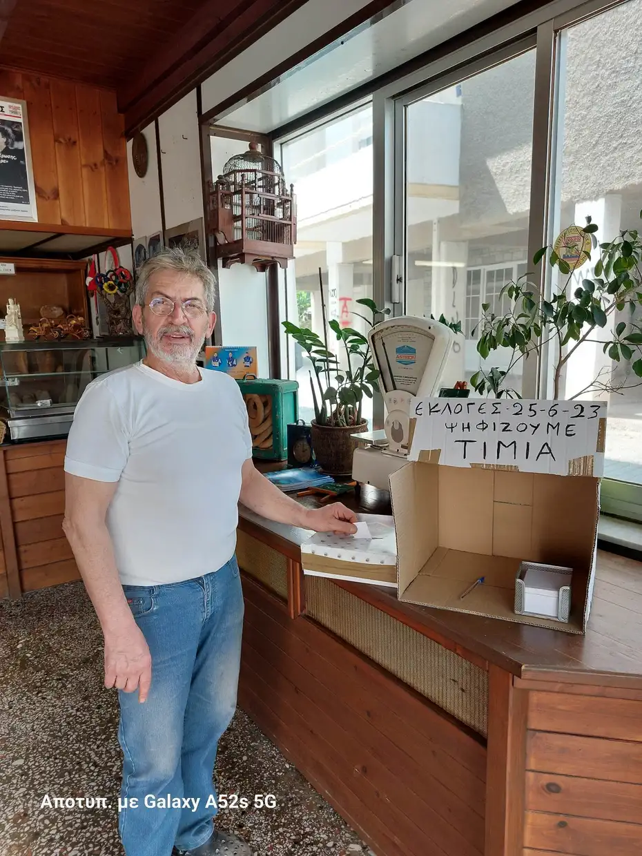 Ο γνωστός αρτοποιός στήνει κάλπη για το αποτέλεσμα των εκλογών της 25ης Ιουνίου.