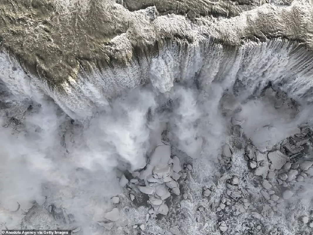 Όπως φαίνεται στα εντυπωσιακά βίντεο που ανέβασαν χρήστες στο Twitter, ενώ φαίνεται πως «πάγωσαν» οι διάσημοι καταρράκτες, ουσιαστικά το νερό δεν σταματά ποτέ.