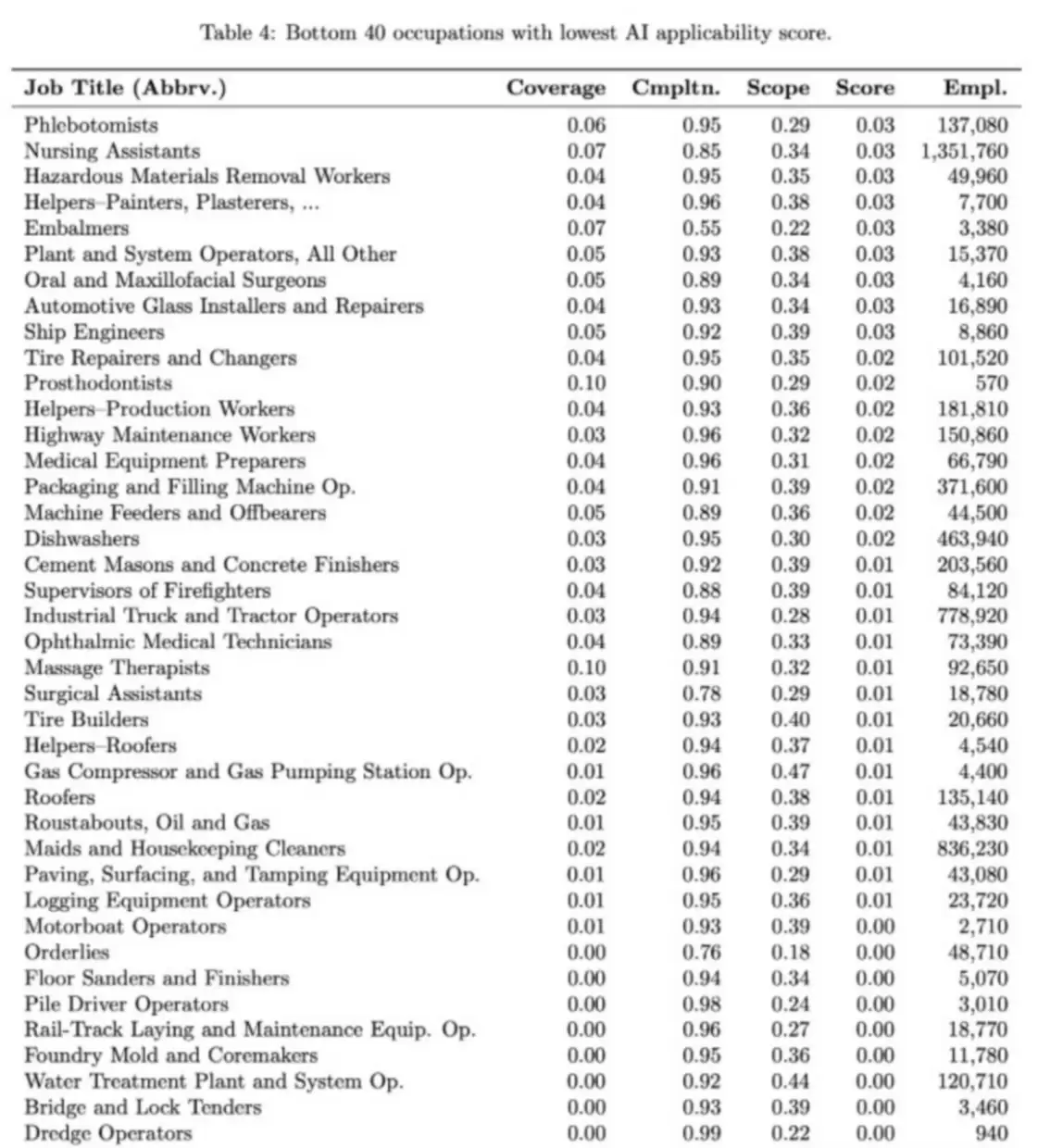 Τα αποτελέσματα; Οι εργασίες που απαιτούν σωματική εργασία, ανθρώπινη επαφή και πρακτικές δεξιότητες είναι οι πιο ασφαλείς και δεν κινδυνεύουν από την αντικατάσταση της τεχνητής νοημοσύνης.