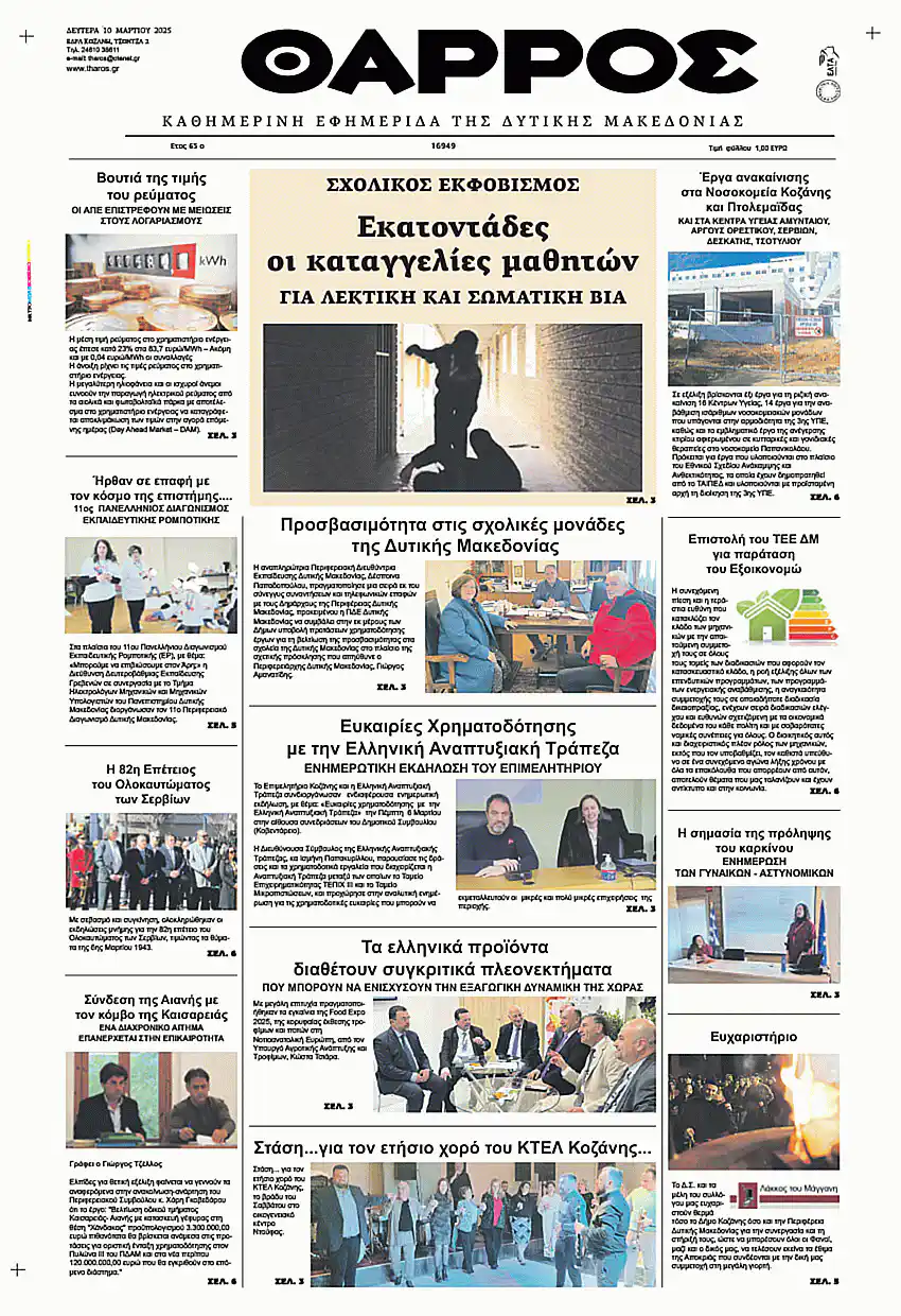 Η καθημερινή εφημερίδα της Κοζάνης και της Δυτικής Μακεδονίας στην ηλεκτρονική της έκδοση.