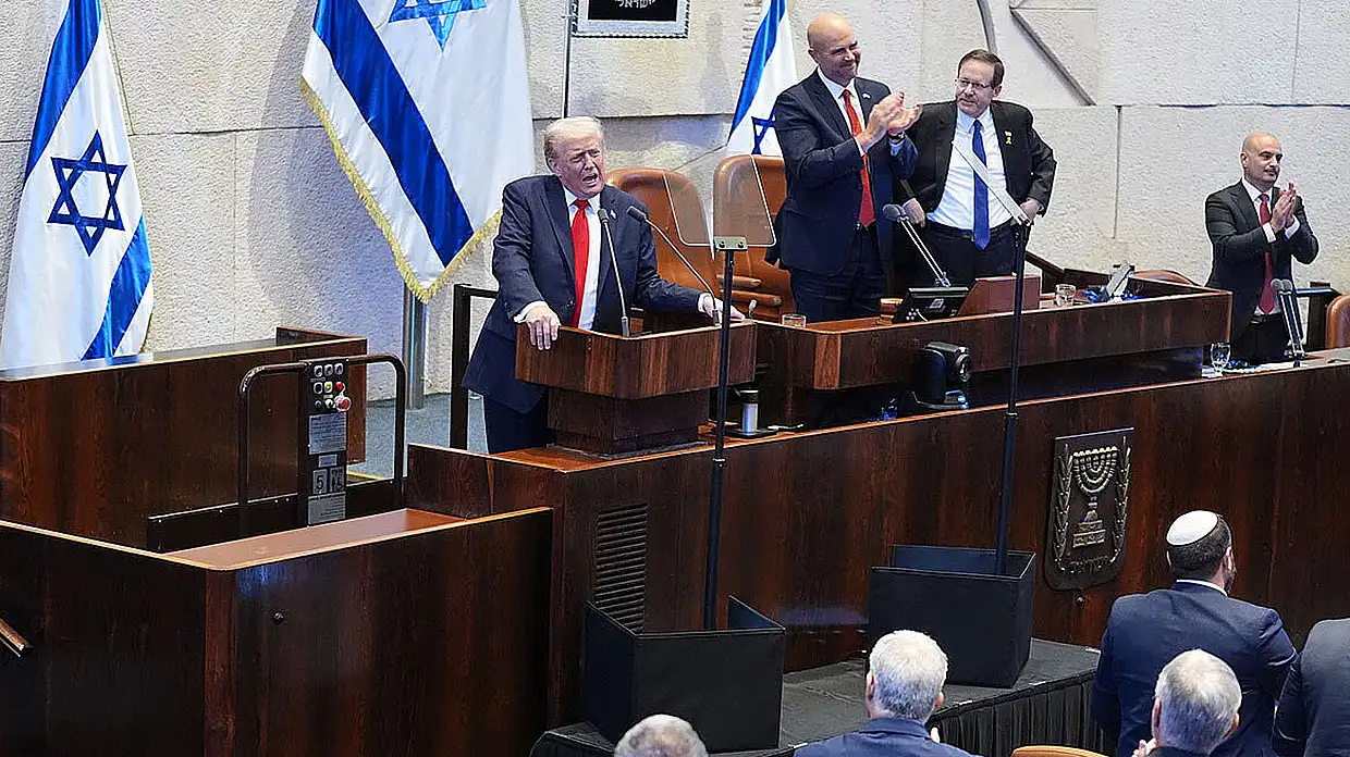 Ανέφερε το ταξίδι του στην Αίγυπτο αργότερα σήμερα, για το οποίο ο Τραμπ είπε ότι έχει ήδη αργήσει πολύ, και αστειεύτηκε για τη διάρκεια των ομιλιών που έγιναν πριν από αυτόν στο Κνέσετ.