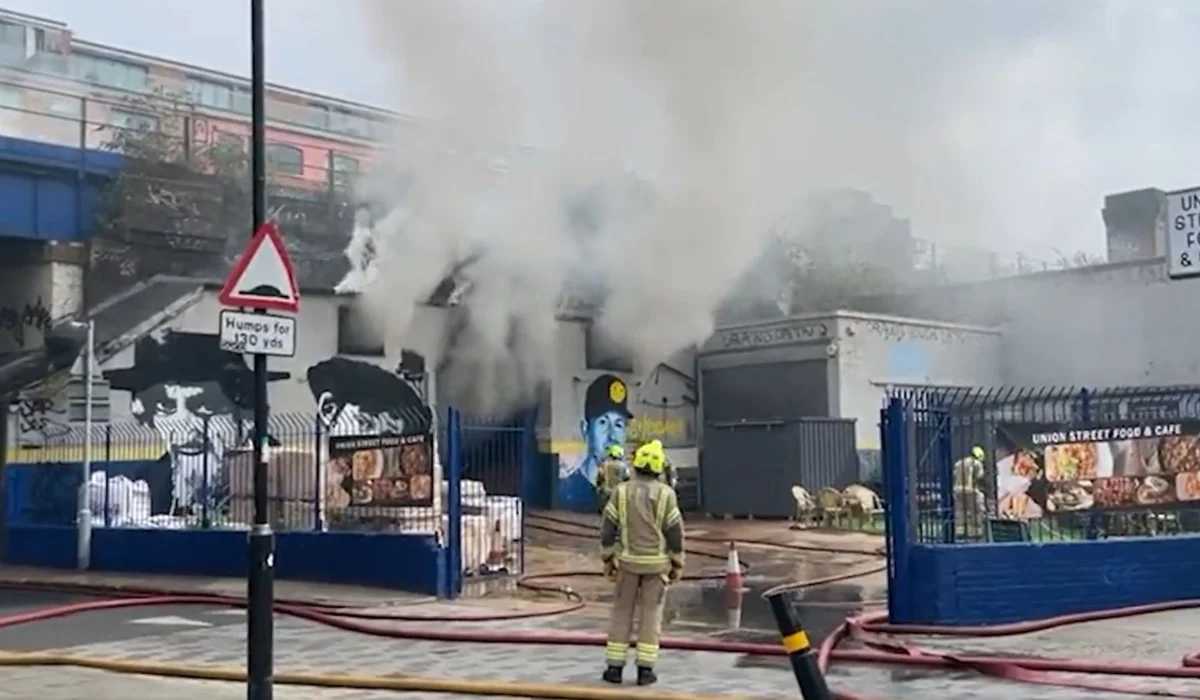 Εικόνες που αναρτήθηκαν από την πυροσβεστική στο Twitter δείχνουν καπνό να βγαίνει από τον δρόμο που περνάει κάτω από την σιδηροδρομική γέφυρα, στον οποίο υπάρχουν κάποια οχήματα και έχει τυλιχθεί στις φλόγες. Οι σιδηροδρομικοί σταθμοί Σάουθγουορκ και Λόντον Μπριτζ έκλεισαν.