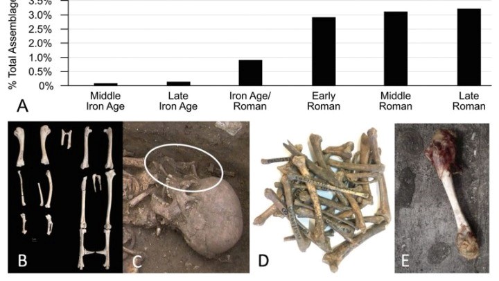 Στη διάρκεια της Εποχής του Σιδήρου στην Ευρώπη, σύμφωνα με τους ερευνητές, τα κοτόπουλα τύγχαναν μάλλον…σεβασμού και γενικά δεν θεωρούνταν τροφή. Αρκετά από τα πρώτα ευρωπαϊκά κοτόπουλα θάβονταν μόνα τους ή μαζί με ανθρώπους (οι άνδρες συχνότερα μαζί με κόκορες και οι γυναίκες με κότες). Ήταν η Ρωμαϊκή Αυτοκρατορία αυτή που κατέστησε τα κοτόπουλα και τα αυγά τους φαγητό, αν και στη Βρετανία έως τον 3ο αιώνα μ.Χ. τα κοτόπουλα συνήθως δεν τρώγονταν.