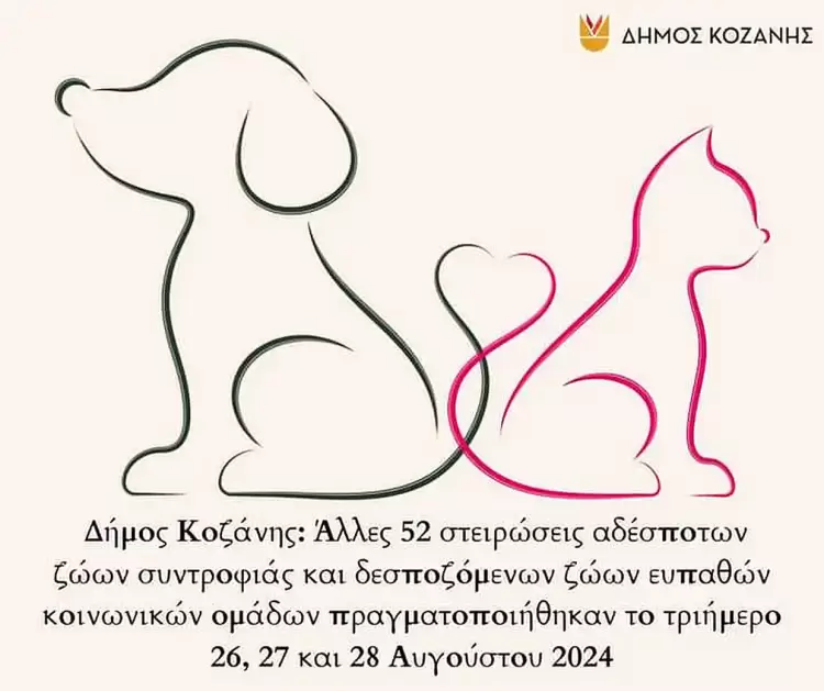 Επισημαίνεται ότι η εν λόγω δράση υλοποιήθηκε υπό την αιγίδα και την πλήρη υποστήριξη του Μη Κερδοσκοπικού Οργανισμού «Tierarzte-pool», εντασσόμενη στο ολοκληρωμένο πρόγραμμα διαχείρισης αδέσποτων ζώων συντροφιάς του Δήμου Κοζάνης.