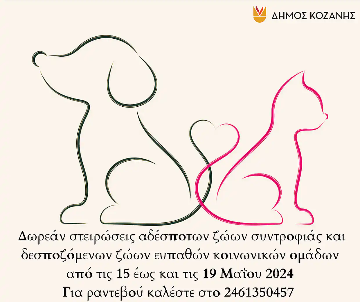 Δήμος Κοζάνης: Δωρεάν στειρώσεις αδέσποτων ζώων συντροφιάς και δεσποζόμενων ζώων