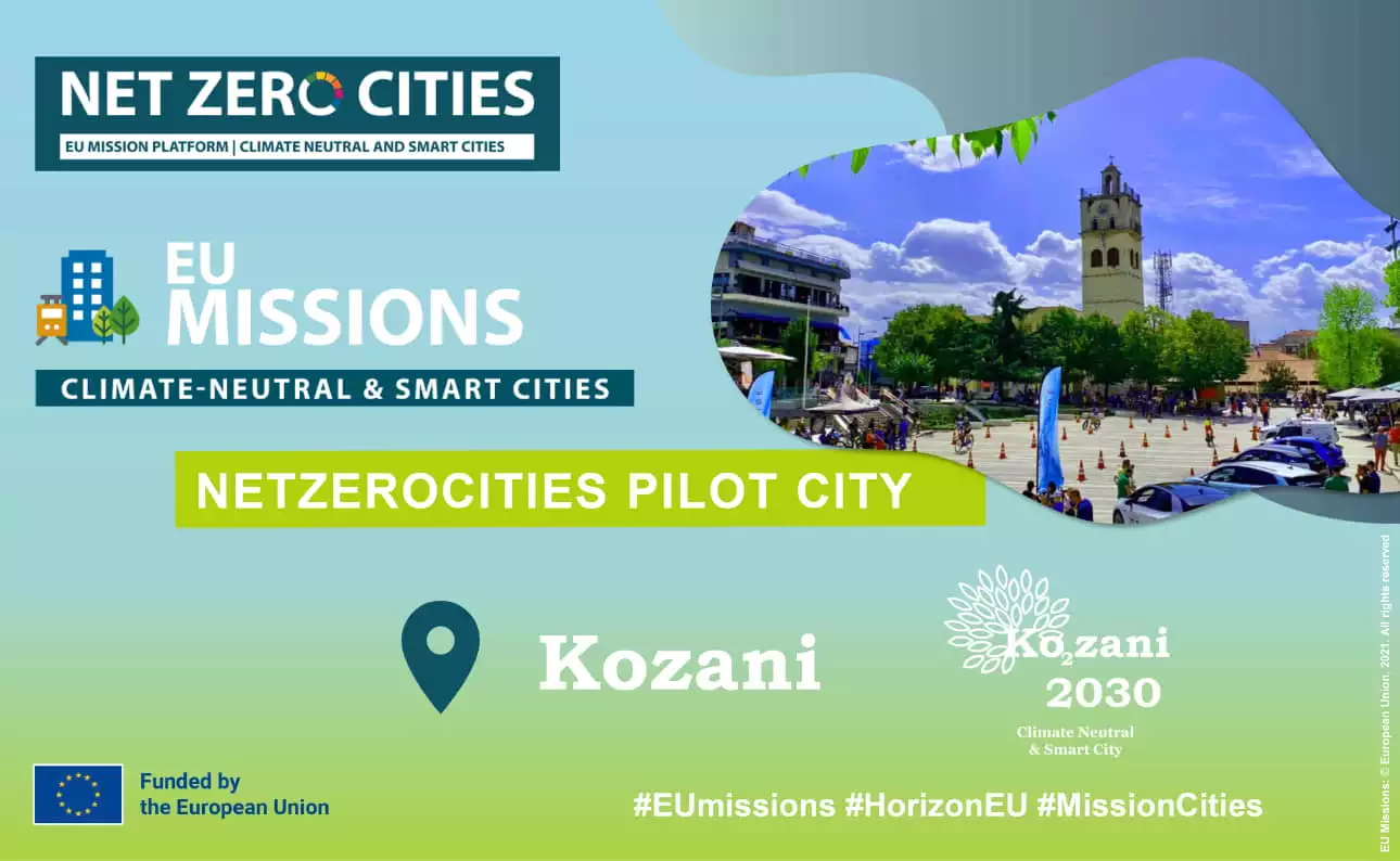 Η Κοζάνη αποτελεί την μοναδική ελληνική πόλη, που επιλέχθηκε για να ξεκινήσει μια καινοτόμα δράση για το κλίμα, μέσω του προγράμματος NetZeroCities Pilot Cities, ενός διετούς προγράμματος που χρηματοδοτείται από την ΕΕ στο πλαίσιο της Αποστολής των Πόλεων της Ευρωπαϊκής Ένωσης.