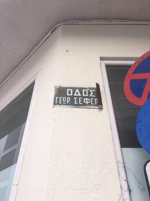 Η πινακίδα της είναι σε αθλία κατάσταση, πέραν του ότι στην ιστορία της λογοτεχνίας δεν υπάρχει «Γεωρ. Σεφερ…» αλλά «Γιώργος Σεφέρης».