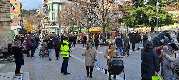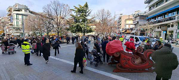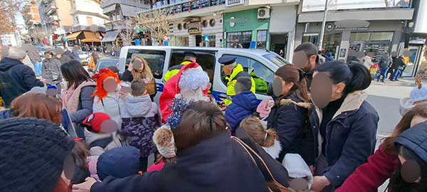 Συγκεκριμένα, οι αστυνομικοί παρουσία του Άγιου Βασίλη διένειμαν έντυπο ενημερωτικό φυλλάδιο με χρηστικές οδηγίες οδικής ασφάλειας και κυκλοφοριακής συμπεριφοράς, δίνοντας ταυτόχρονα συμβουλές και ευχές σε οδηγούς και πεζούς, καθώς και γλυκίσματα στους διερχόμενους πολίτες.