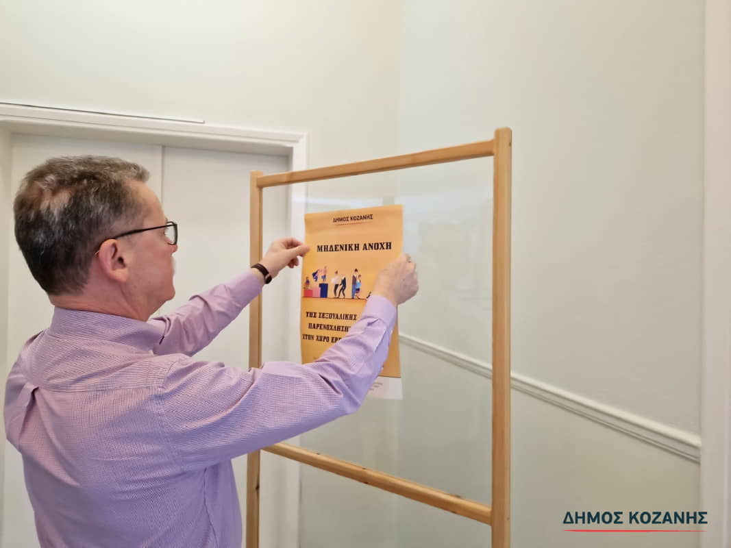 Ο κύριος Μαλούτας τοποθέτησε στο Δημαρχείο την πρώτη αφίσα με το μήνυμα “Μηδενική ανοχή της σεξουαλικής παρενόχλησης στο χώρο εργασίας”.