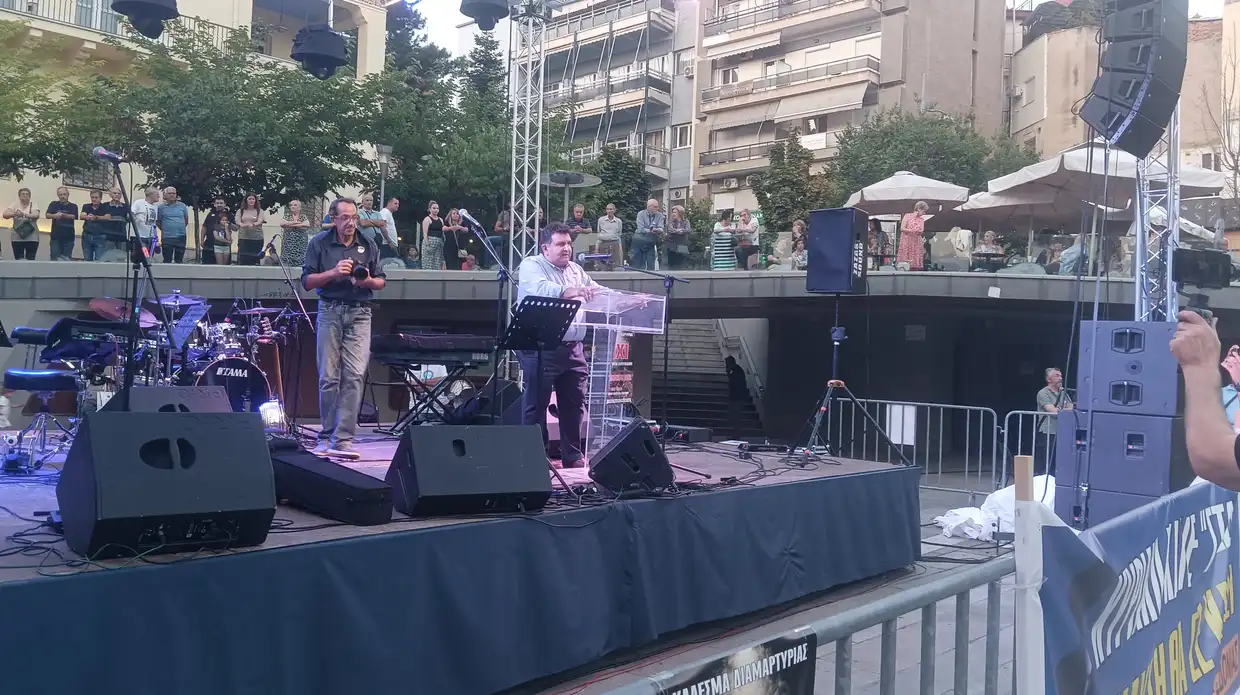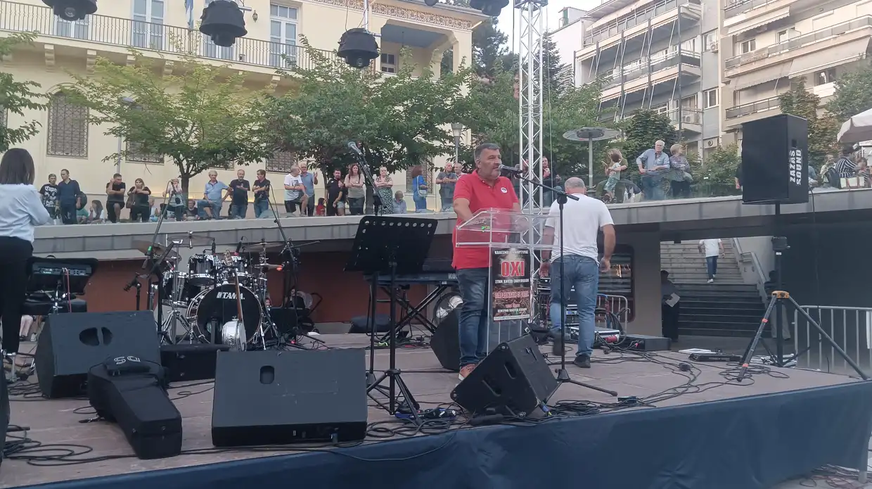 Γιώργος Χριστοφορίδης. Πρόεδρος δημοτικών υπαλλήλων Κοζάνης. Ομιλία στην συγκέντρωση διαμαρτυρίας κατά της μονάδας καύσης απορριμμάτων.