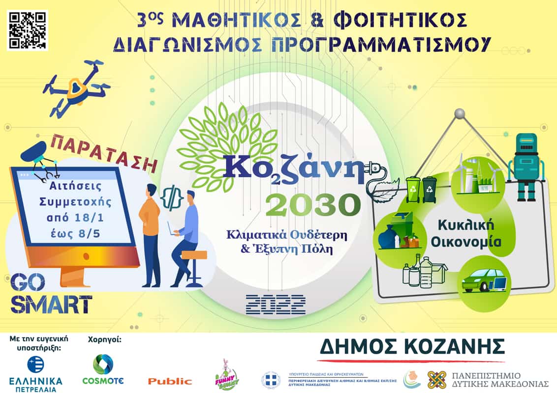 Παράταση για τον Μαθητικό & Φοιτητικό Διαγωνισμό Προγραμματισμού «Κοζάνη 2030: Κλιματικά ουδέτερη και έξυπνη πόλη»