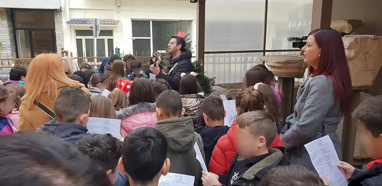 Επίσης, για πρώτη φορά φέτος υλοποιήθηκε από την Εφορεία και την Προϊσταμένη του Τμήματος Συντήρησης Αρχαιοτήτων και Έργων Τέχνης Βικτωρία Χαραμπάτη, που είχε και την ιδέα, μία παράλληλη δράση αφιερωμένη στο Πνεύμα των Χριστουγέννων. Για όλους τους μαθητές, που ανήλθαν συνολικά στους 80, ετοιμάστηκαν κάρτες με διαφορετικές και μοναδικές ευχές, οι οποίες προσφέρθηκαν στα παιδιά με την παρότρυνση να τις χαρίσουν και τα ίδια σε ανθρώπους που αγαπούν και έτσι, από χέρι σε χέρι, να φτάσουν όσο γίνεται πιο μακριά, ταξιδεύοντας τις ευχές μας και χαρίζοντας χαμόγελο και ελπίδα.
