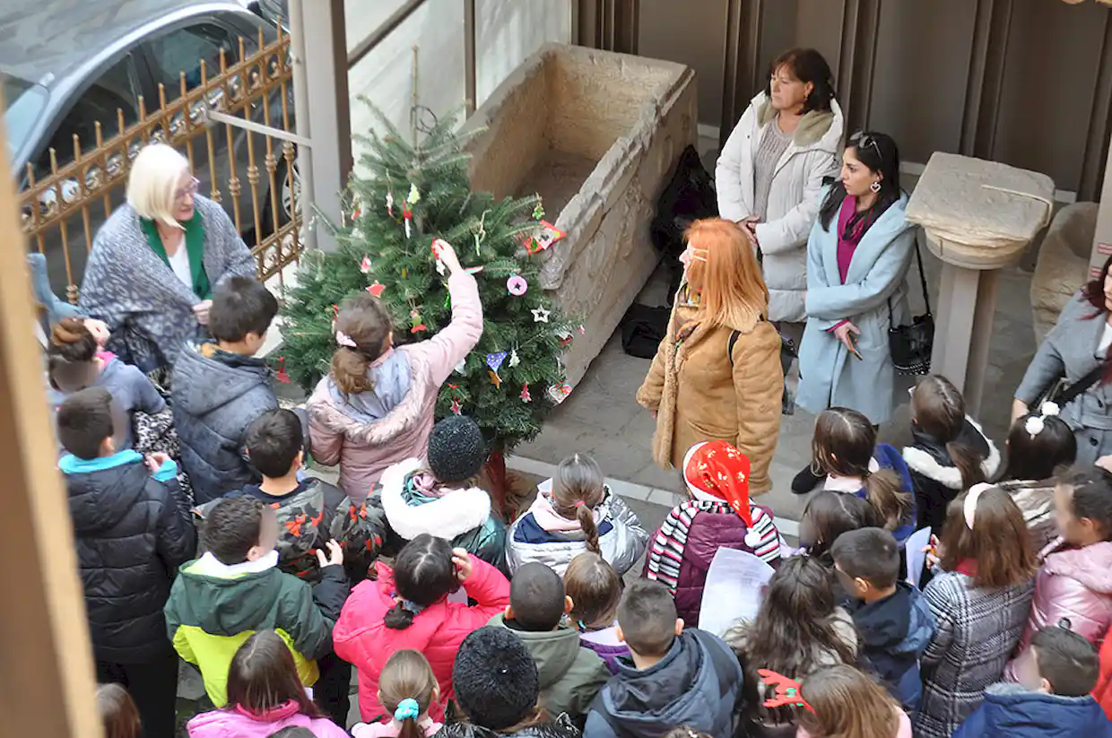 Το δέντρο της Αρχαιολογικής Συλλογής Κοζάνης στόλισαν, όπως και πέρσι, οι μαθητές της Δ΄ και ΣΤ΄ τάξης του Δημοτικού Σχολείου Χαρισίου Μούκα. Τα εντυπωσιακά πήλινα ζωγραφισμένα στολίδια κατασκεύασαν οι ίδιοι με την καθοδήγηση των δασκάλων τους, από πηλό που χορήγησε η Εφορεία. Μετά το στολισμό οι μαθητές πλημμύρισαν την αυλή της Συλλογής με χριστουγεννιάτικες μελωδίες. Ακολούθως, ξεναγήθηκαν στην Έκθεση από την αρχαιολόγο της Εφορείας Άννα Κλημάντου.