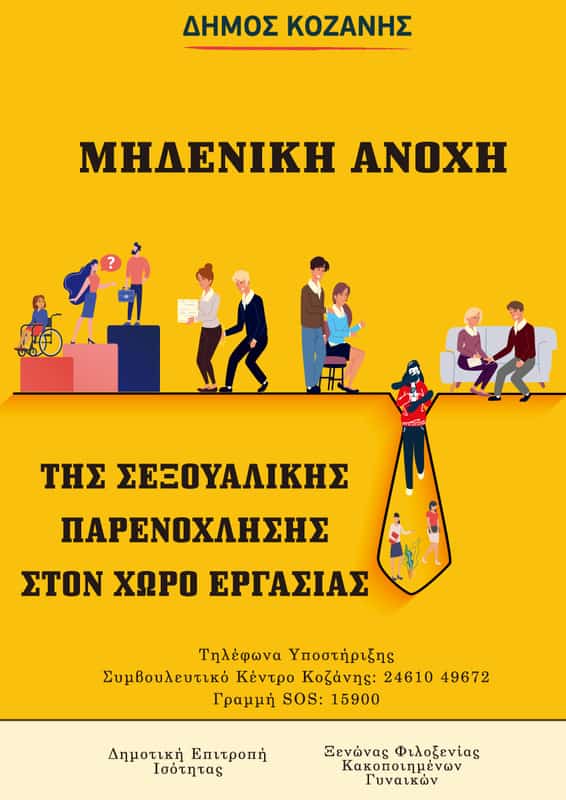 Τη λήψη μέτρων πρόληψης και καταπολέμησης περιστατικών σεξουαλικής παρενόχλησης στους χώρους εργασίας, στους χώρους εξυπηρέτησης πολιτών, καθώς και σε όλα τα Νομικά Πρόσωπα, επιχειρήσεις, υπηρεσίες και δομές του Δήμου Κοζάνης, ψήφισε ομόφωνα το Δημοτικό Συμβούλιο, στη συνεδρίαση της 11ης Απριλίου 2022.