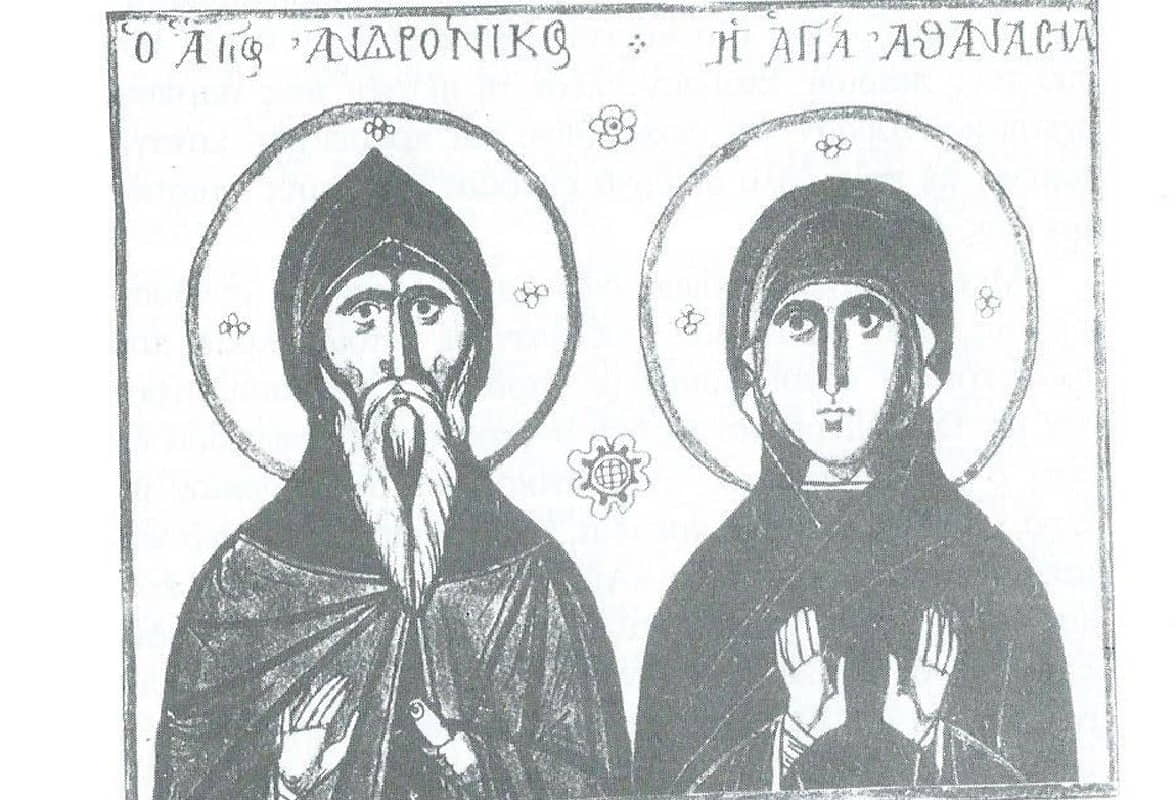 Στο Συναξάρι διαβάζουμε τους στίχους: ‘’Σύσκηνον Ανδρόνικος Αθανασίαν // Κόσμω τ’ εν ασκήσει τε καν πόλω έχει’’. Ο Ανδρόνικος είχε σύσκηνη την Αθανασία στον κόσμο και στην άσκηση, αλλά σύσκηνη την έχει και στον ουρανό.