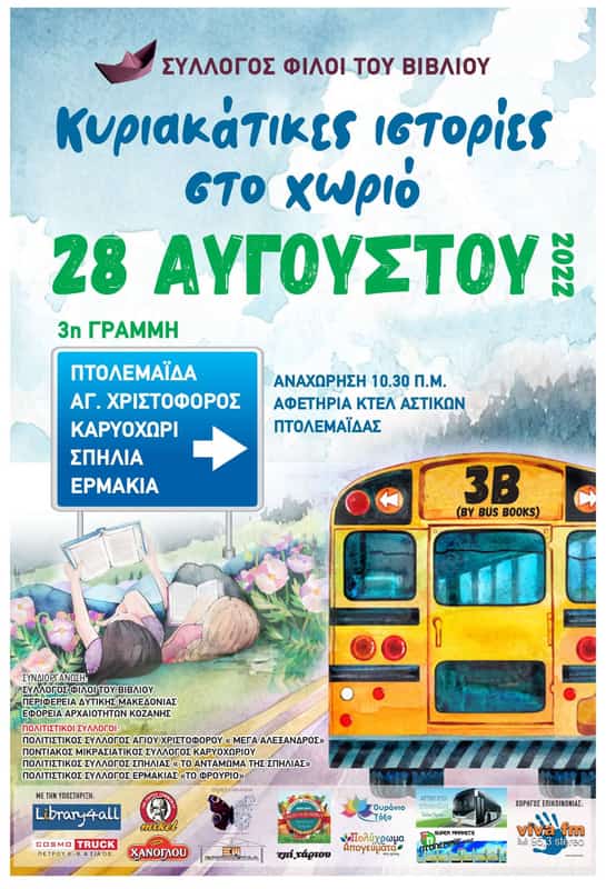 Ένα λεωφορείο 3B (ByBusBooks) εφοδιασμένο με θεματικά λογοτεχνικά κουτιά θα ξεκινήσει από την πόλη της Πτολεμαΐδας, θα σταθμεύσει στα χωριά των γραμμών  και θα αλληλεπιδράσει με τις ιστορίες του χωριού.
