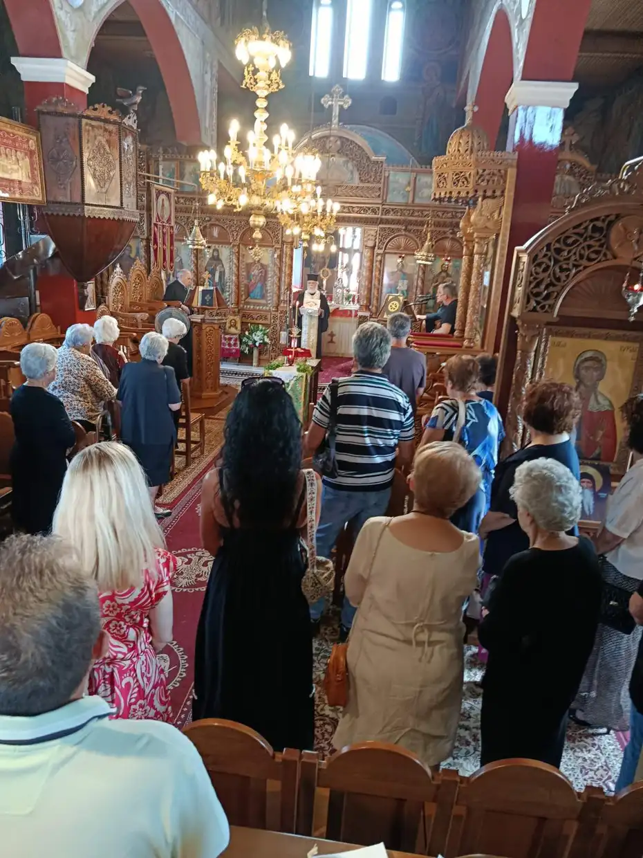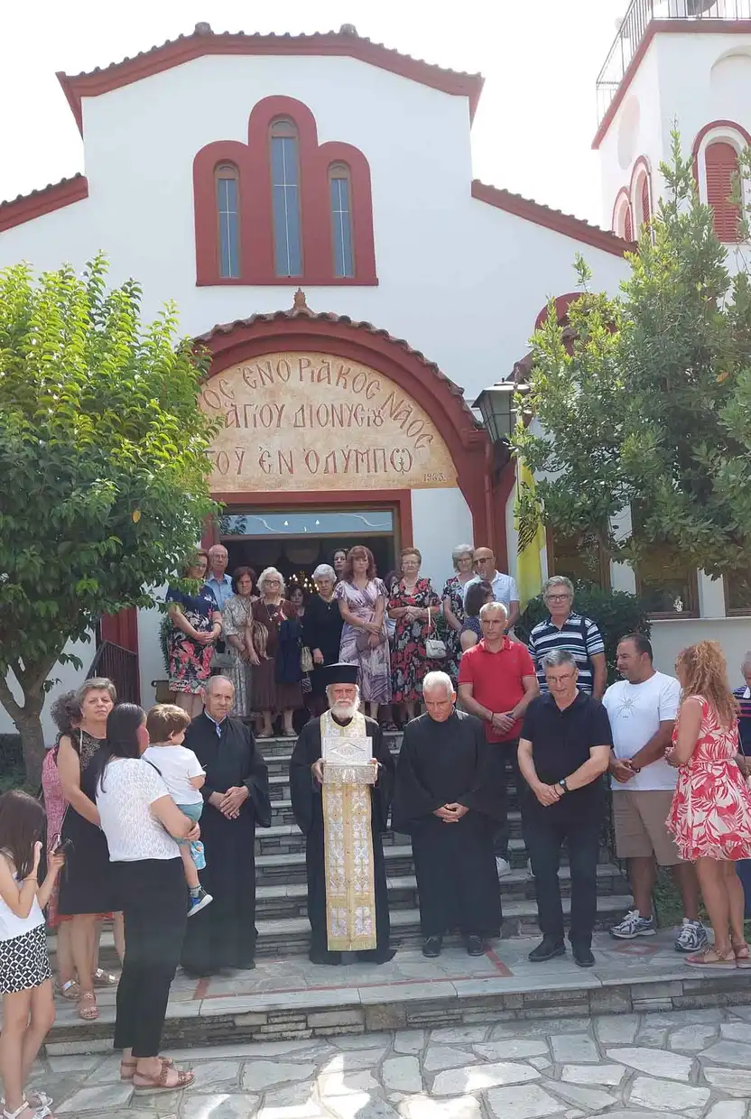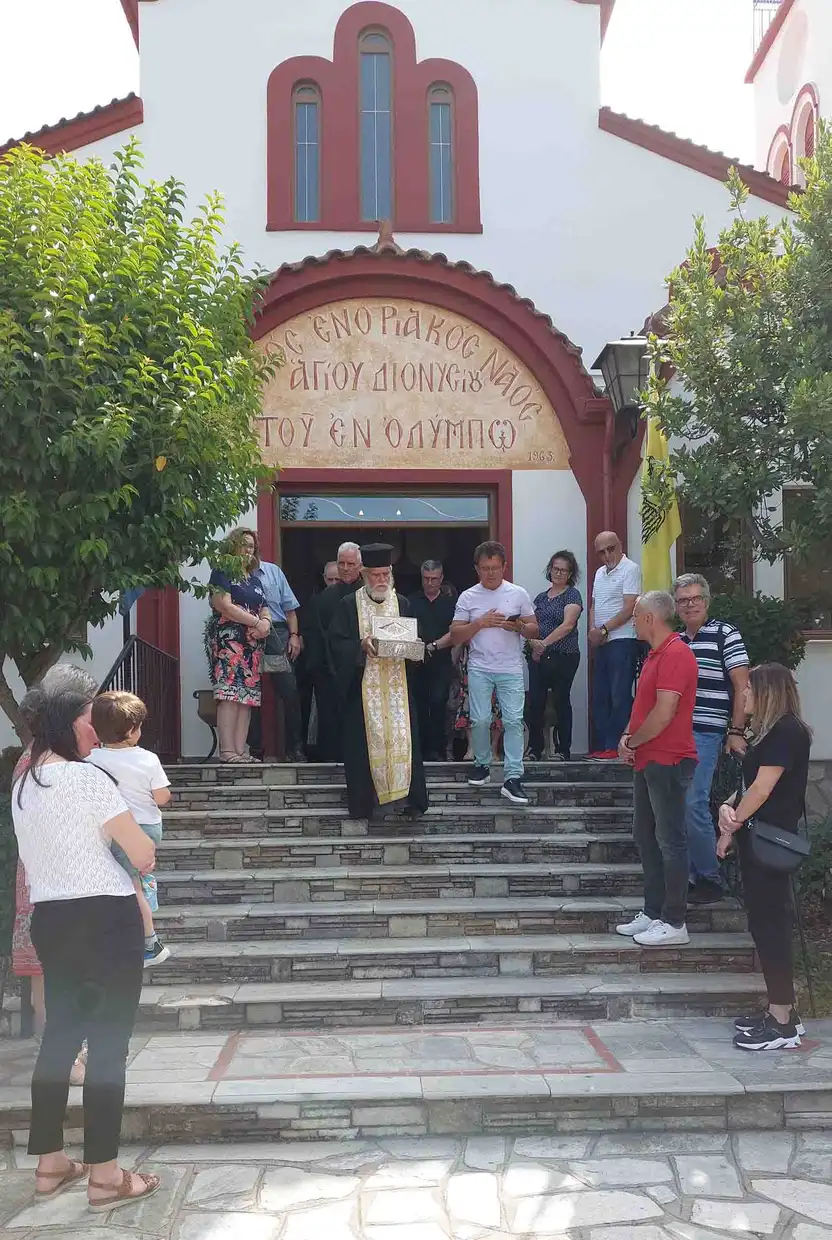 Επιστράφηκε, μέσα σε κλίμα ευχαριστιακής λειτουργικής συγκίνησης, (πρόσωπα πιστών βουρκωμένα με το ψέλλισμα στα χείλη ‘’ο Άγιος φεύγει!’’) από το Βελβεντό στο Μοναστήρι του στον Όλυμπο, μετά τη Θεία Λειτουργία της Κυριακής, 17-8-2025, στην οποία συμμετείχαν πολλοί πιστοί, το ι. λείψανο του Αγίου Διονυσίου του εν Ολύμπω.