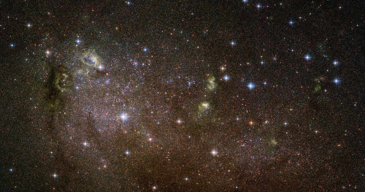 This image shows an irregular galaxy named IC 10, a member of the Local Group — a collectiongrouping of over 50 galaxies inwithin our cosmic neighbourhood that includes the Milky Way.