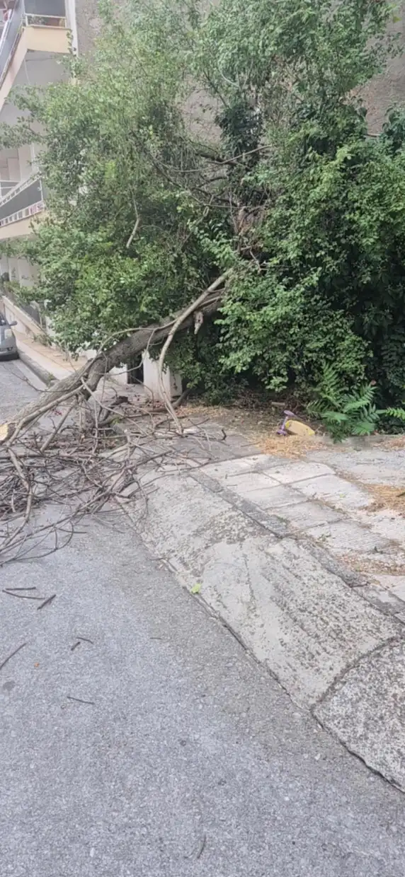 Πτώσεις δέντρων καταγράφηκαν σε πολλά σημεία, προκαλώντας ζημιές σε δημόσιο χώρο και αναστάτωση στην κυκλοφορία.