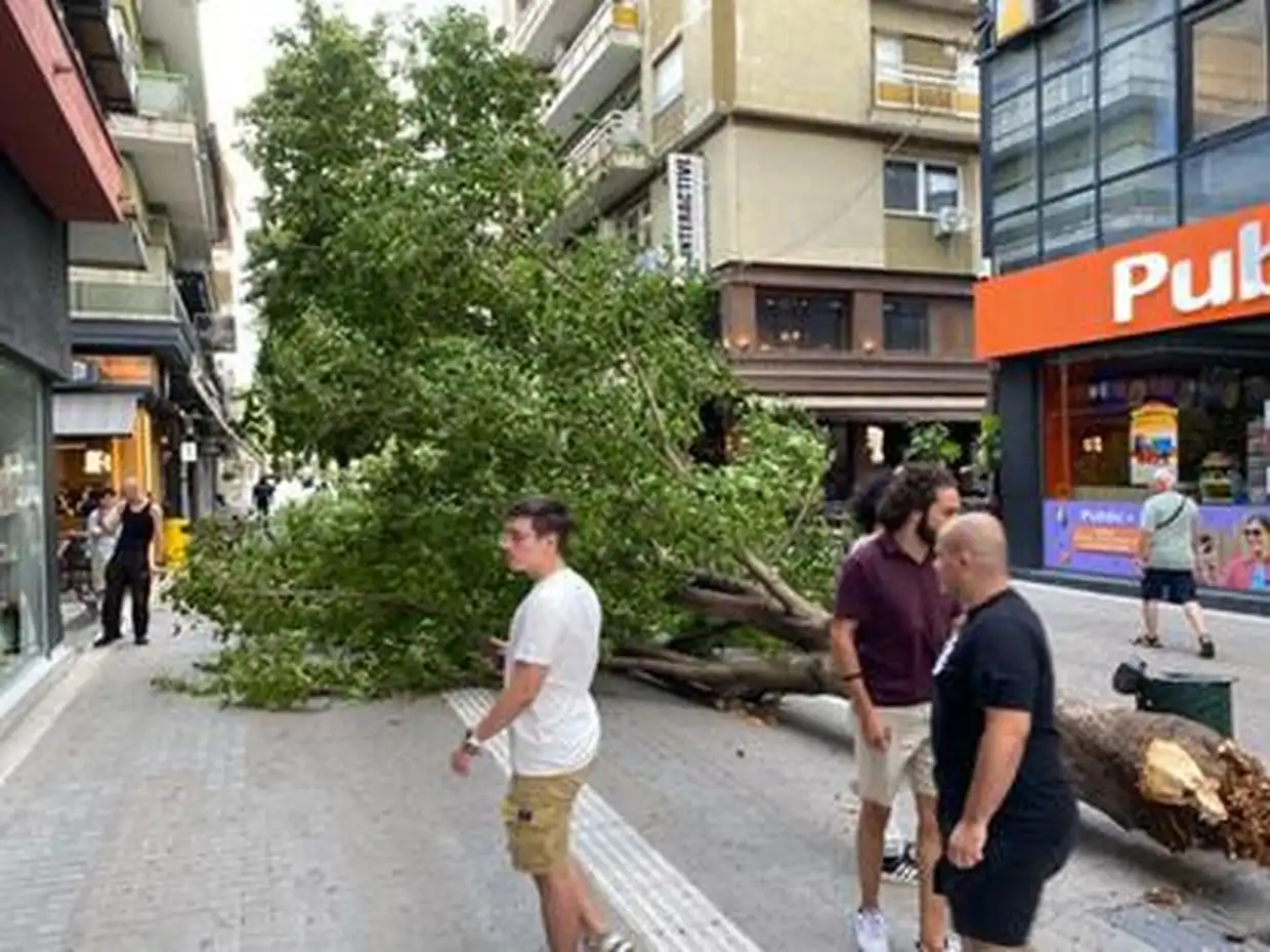 Ένα μεγάλο δέντρο κατέρρευσε στον κεντρικό πεζόδρομο, δημιουργώντας κινδύνους για περαστικούς και διερχόμενα οχήματα.