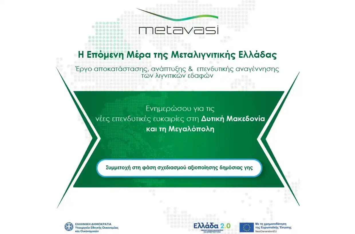 Με κύρια αποστολή τη στήριξη της Δίκαιης Αναπτυξιακής Μετάβασης, η Μετάβαση Μ.Α.Ε. επιδιώκει να δώσει νέα πνοή στις περιοχές αυτές, εξασφαλίζοντας βιώσιμη αξιοποίηση της δημόσιας γης και ουσιαστικές ευκαιρίες συμμετοχής του ιδιωτικού τομέα στην επόμενη μέρα της ελληνικής περιφέρειας.