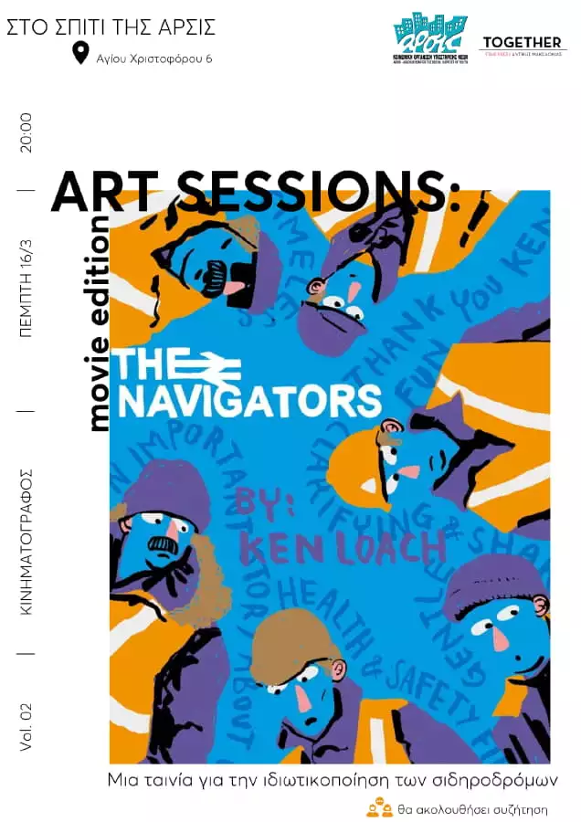 Τα Art Sessions, μετά την πετυχημένη πρώτη εικαστική έκθεση, ανοίγουν μια παρένθεση στην 7η τέχνη, η οποία παρουσιάζει πολλές φορές κοινά στοιχεία με τη ζωή και λειτουργεί προφητικά για γεγονότα. Με αφορμή το τραγικό σιδηροδρομικό δυστύχημα στην Κοιλάδα των Τεμπών, που στοίχησε τη ζωή σε δεκάδες επιβάτες, θυμόμαστε τη βρετανική ταινία του 2001, με τίτλο «Τhe Navigators», σε σενάριο Ρομπ Ντόμπερ και σκηνοθεσία Κεν Λόουτς.
