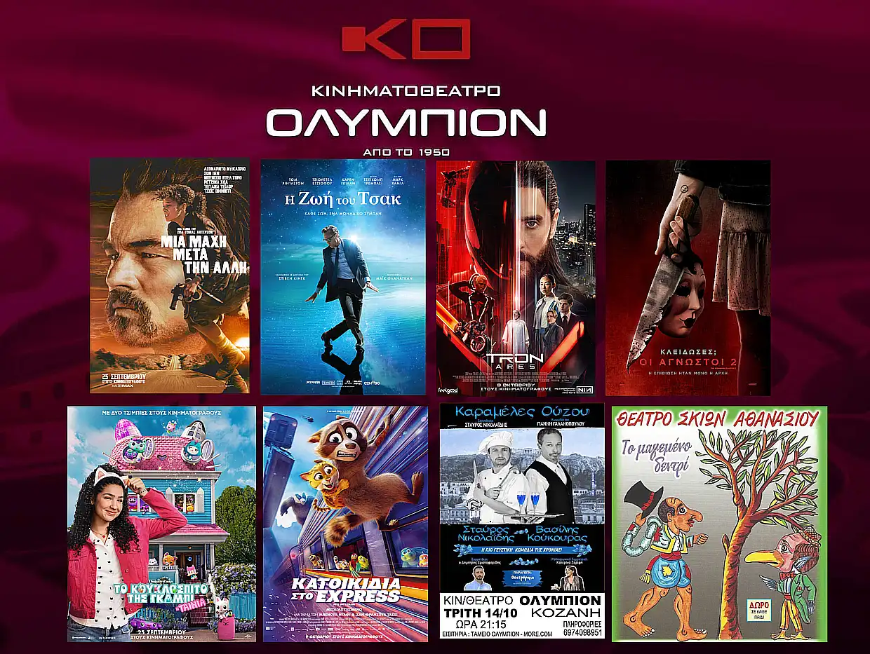 Για το πρόγραμμα του κιν/φου επισκεφτείτε την ιστοσελίδα μας: www.cineolympion.gr