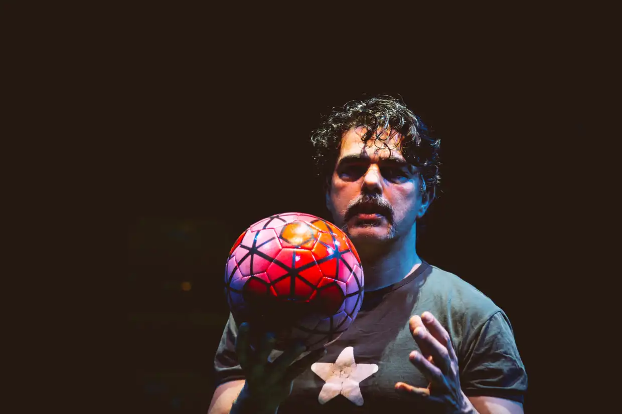 Το FOOTBALL είναι μια πολιτική σάτιρα , ένας καυστικός μονόλογος που αναλύει την ιστορία της ανθρωπότητας μέσα από την ιστορία του ποδοσφαίρου ,ξεκινώντας από το 1500 μ.Χ. Μιλάει για ένα αρχαίο ένστικτο του ανθρώπου να “κλωτσάει” και για μια άγρια ψυχή που βρίσκεται θαμμένη μέσα μας και αναφέρει χαρακτηριστικά :