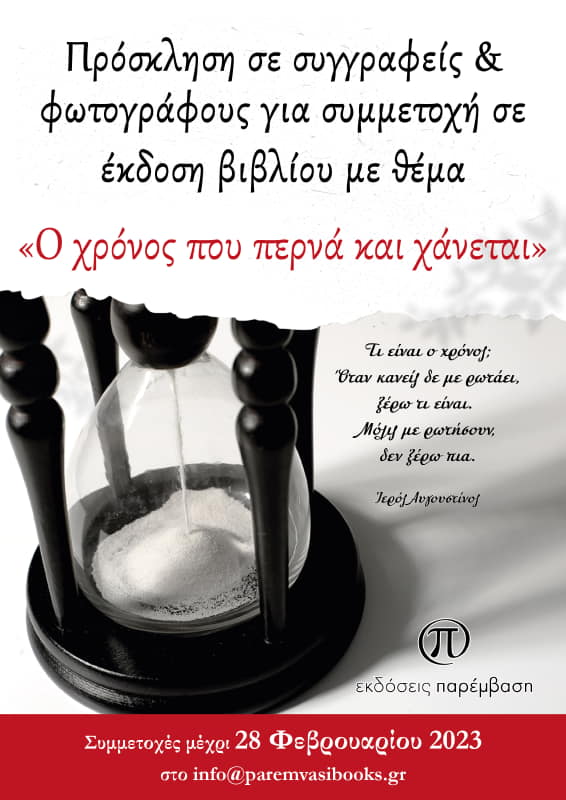 Πρόσκληση σε συγγραφείς και φωτογράφους για συμμετοχή σε έκδοση βιβλίου με θέμα «Ο χρόνος που περνά και χάνεται»