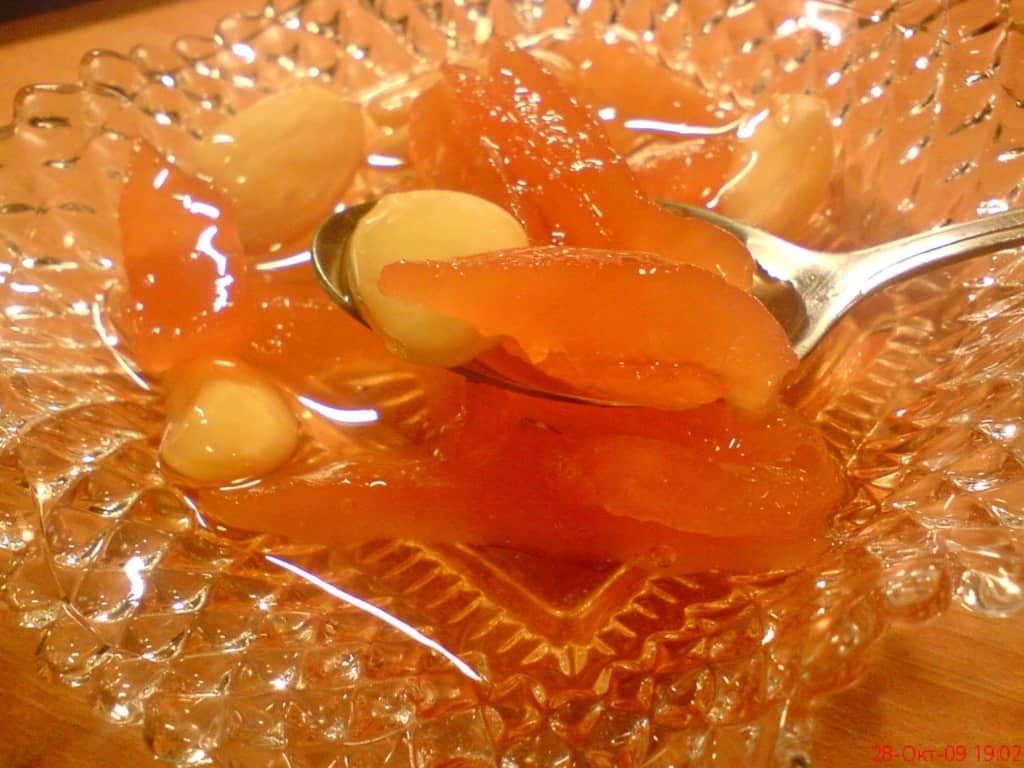 Αν θέλουμε προσθέτουμε αμύγδαλα ασπρισμένα και ελαφρά καβουρντισμένα προς το τέλος της διαδικασίας.