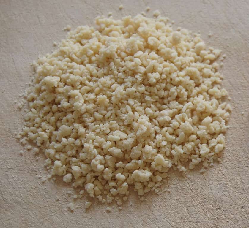 Τότε τα σπάζουμε σε μικρά κομμάτια και τα τρίβουμε στο χοντρό κόσκινο. Ο τραχανάς βγαίνει σαν ψιλούτσικο ρυζάκι.