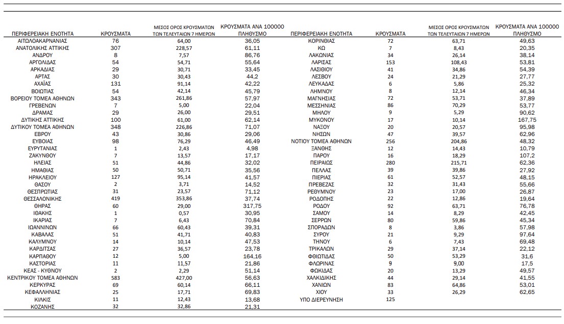 Τα νέα εργαστηριακά επιβεβαιωμένα κρούσματα της νόσου(άτομα) που καταγράφηκαν τις τελευταίες 24 ώρες ήταν 4.782. Ο συνολικός αριθμός των ατόμων που νόσησαν ανέρχεται σε 3.380.594 (ημερήσια μεταβολή +0.1%), εκ των οποίων 48.8% άνδρες.